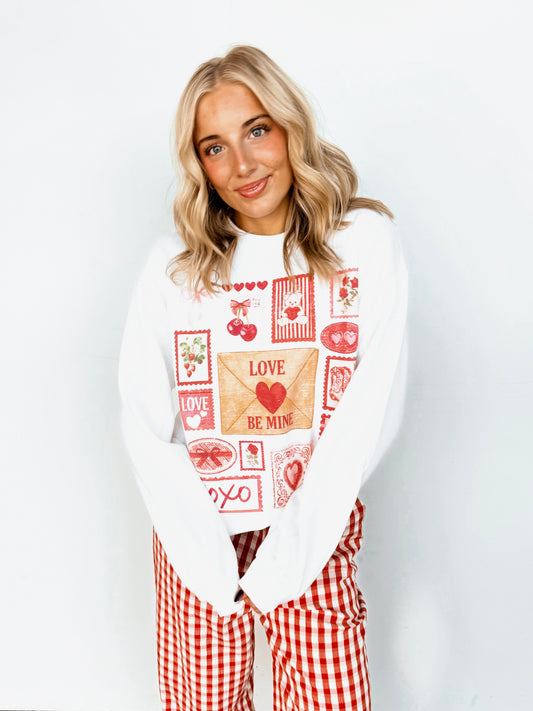 White Love Stamp Collage Crewneck