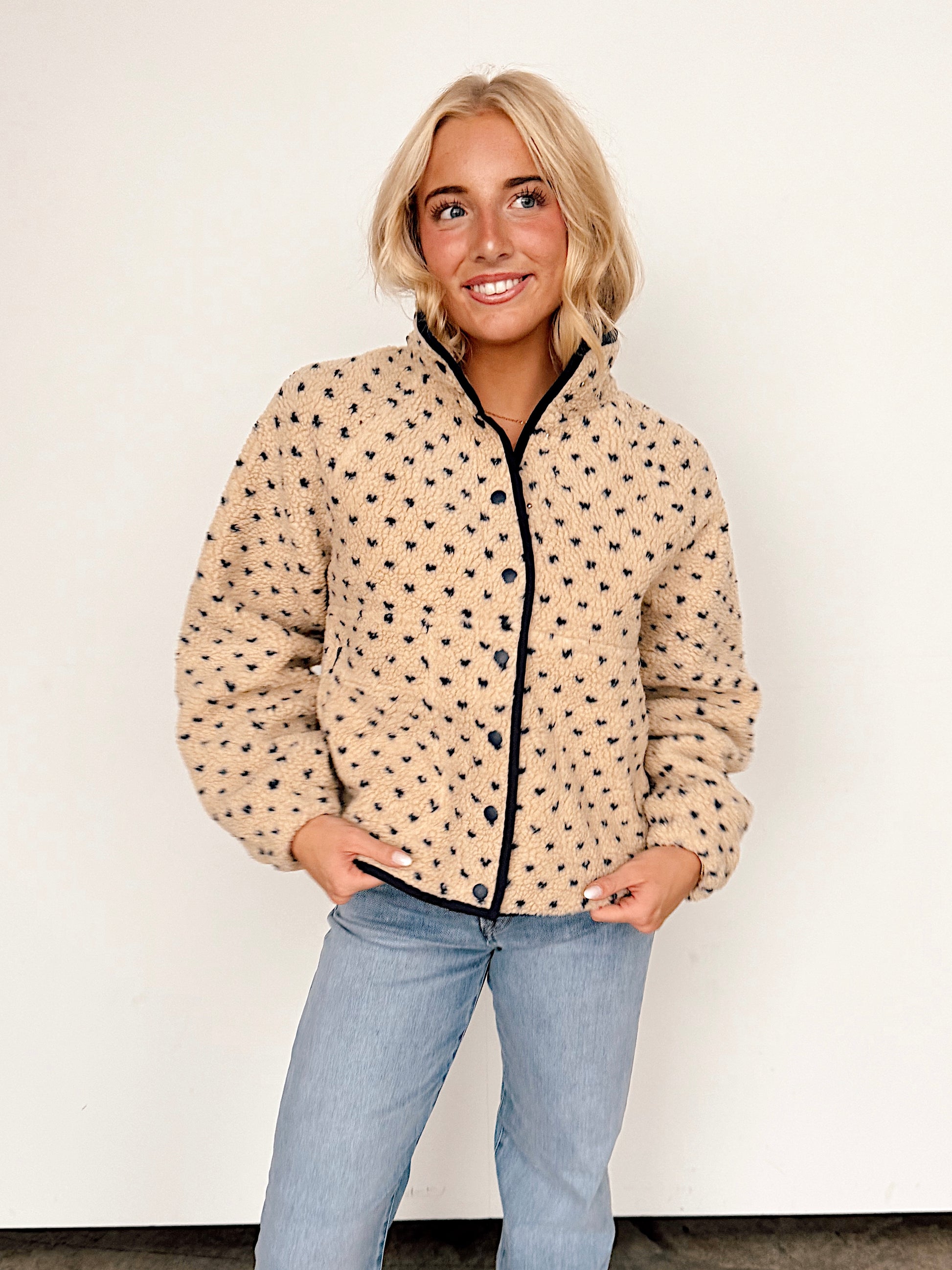 Stay extra cozy with this high pile fleece jacket. Featuring ultra-soft fleece and snap button closure, it offers maximum warmth and comfort on chilly days. Perfect for layering, this jacket blends plush texture with a relaxed, stylish fit for a cold-weather essential you'll reach for again and again.